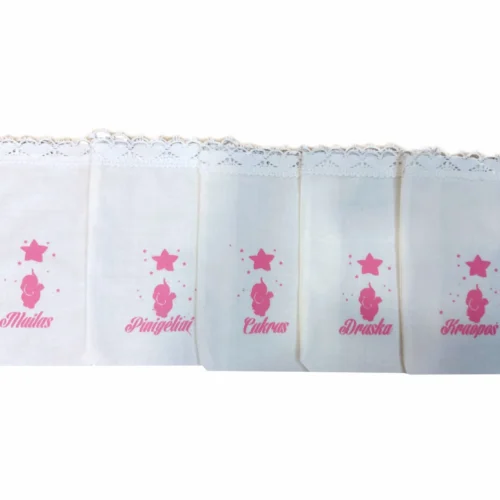 Krikšto maišeliai su rožiniu paukščiuku
