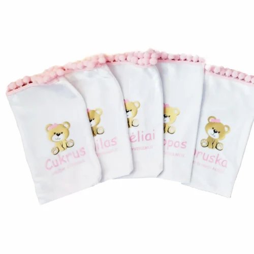 Krikšto maišeliai su rožiniu meškučiu