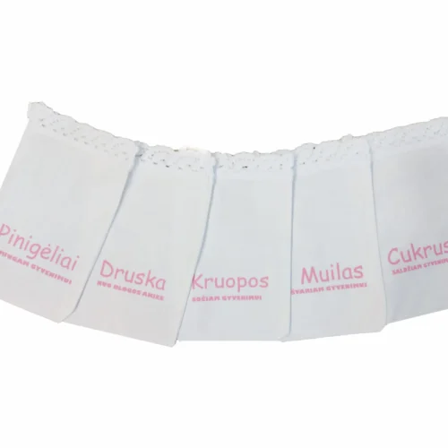 Rožiniai Krikšto maišeliai su nėriniu