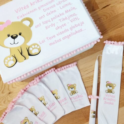 Krikšto rinkinys ROŽINIS MEŠKUTIS