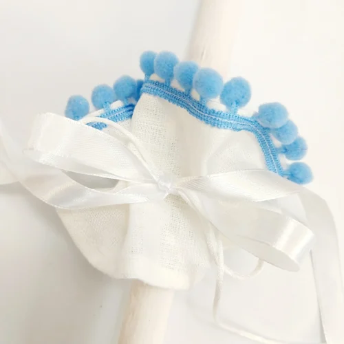Krikšto žvakės sijonėlis su žydru nėriniu