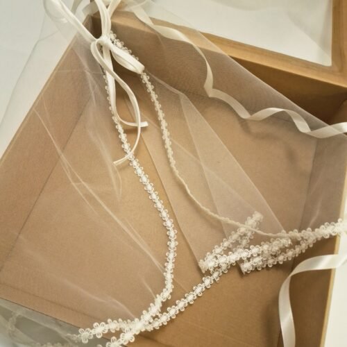 Krikšto skraistė iš tiulio su gėlyčių nėriniais