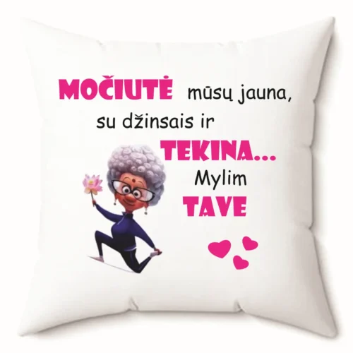 Pagalvėlė močiutė jauna su džinsais ir tekina