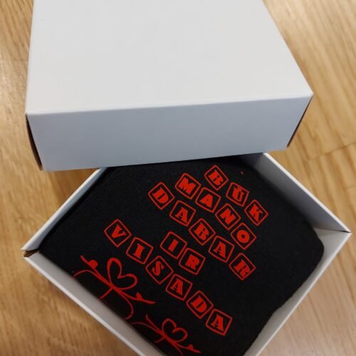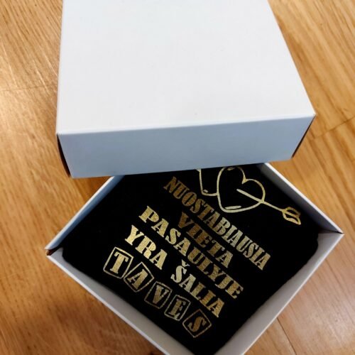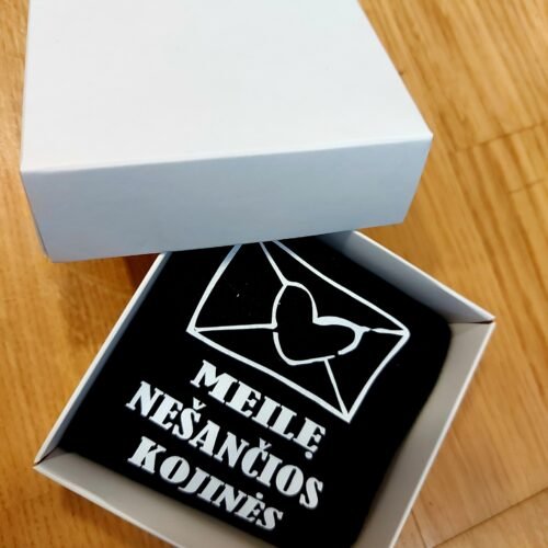 Meilę nešančios kojinės dovanų dėžutėje