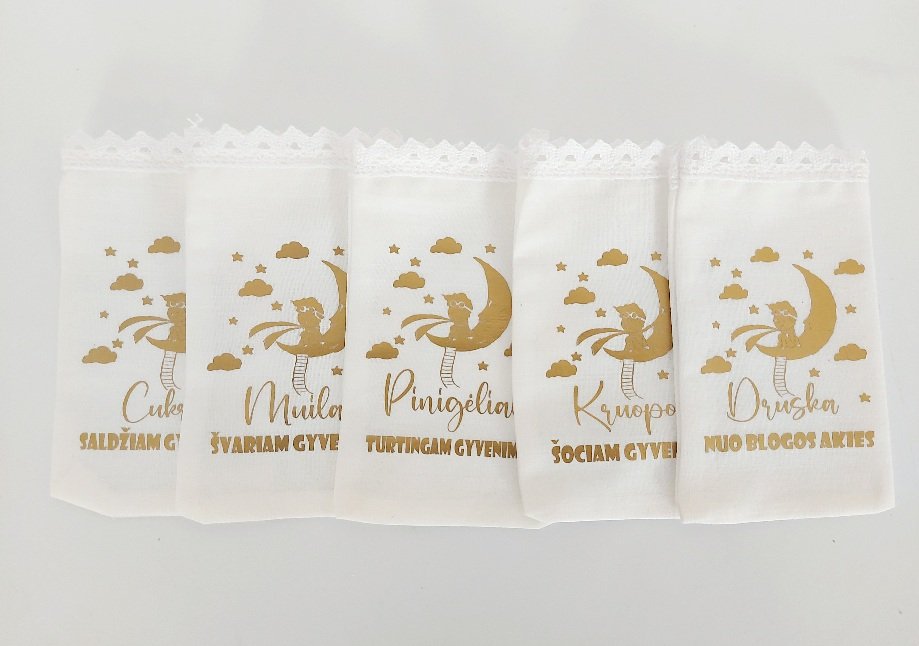 Tai yra rankų darbo gaminys, todėl gali šiek tiek skirtis nuo esančio nuotraukoje.”Išmatavimai: ~8x14cm.” Atsiliepimai Atsiliepimų dar nėra. Būkite pirmas aprašęs “Krikšto maišeliai MAŽASIS PRINCAS Nr.1” Cancel ReplyEl. pašto adresas nebus skelbiamas. Būtini laukeliai pažymėti *Jūsų įvertinimas * Įvertinti… Puikus Geras Vidutinis Patenkinamas Niekam tikęs Name *Email *Jūsų atsiliepimas * Noriu savo interneto naršyklėje išsaugoti vardą, el. pašto adresą ir interneto puslapį, kad jų nebereiktų įvesti iš naujo, kai kitą kartą vėl norėsiu parašyti komentarą. Paskelbti
