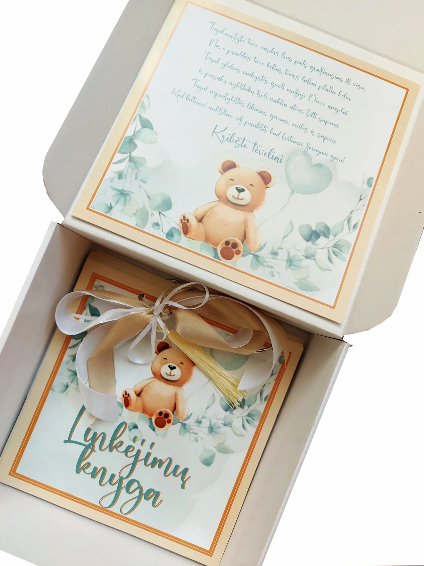 Būkite pirmas aprašęs “Linkėjimų knyga žalia su meškučiu”