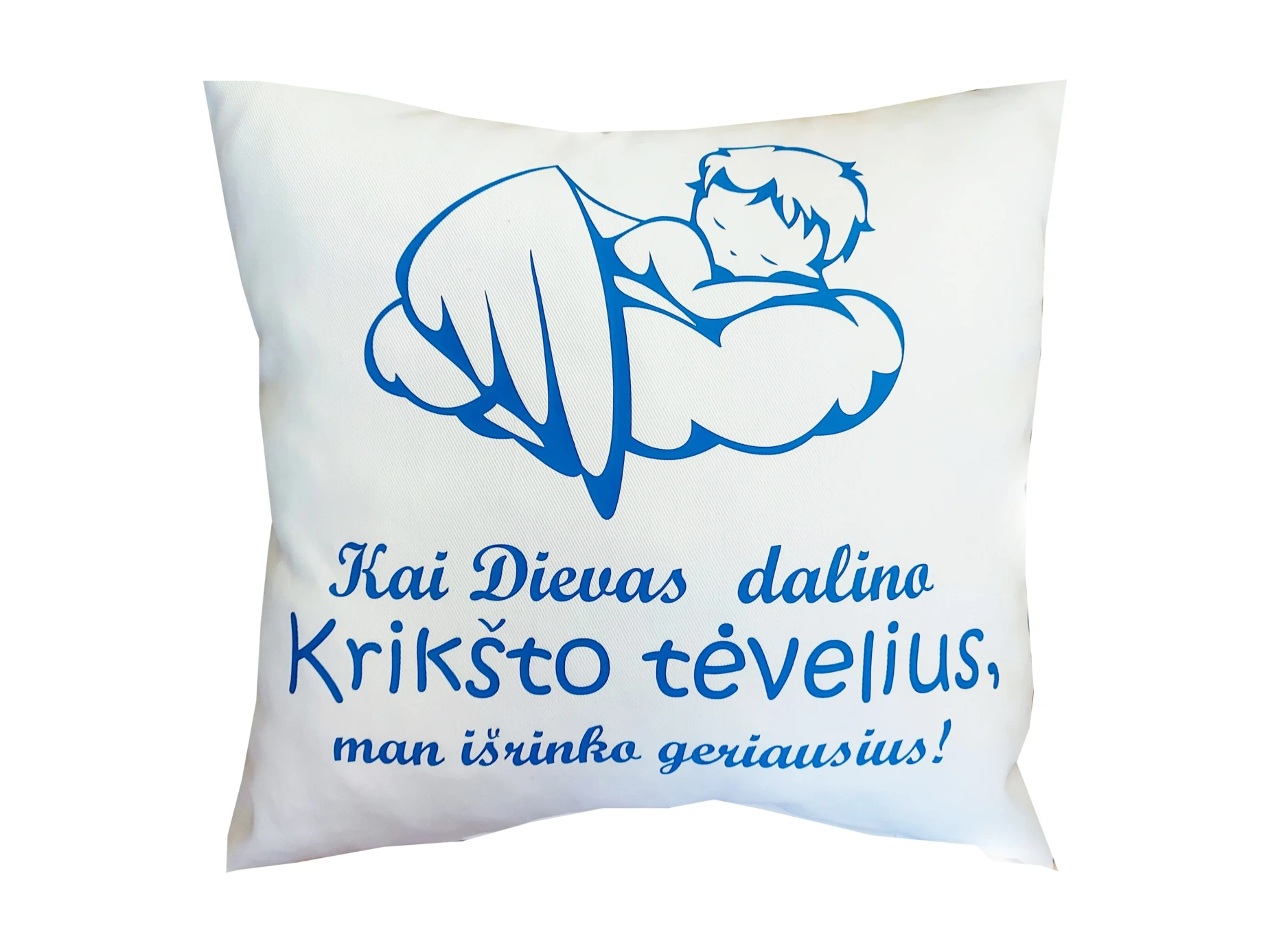 Pagalvė Krikšto tėveliams žydras angeliukas