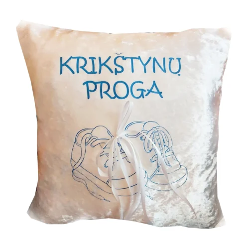 Dekoratyvinė pagalvėlė – nuostabi simbolinė dovana einant sveikinti Pirmosios komunijos ar Krikštynų proga.