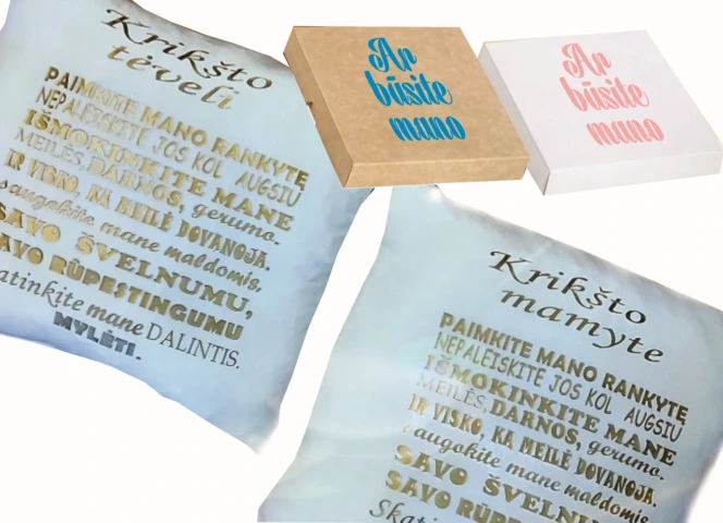 Būkite pirmas aprašęs “Pakvietimas Krikšto mamai pagalvė dėžutėje”