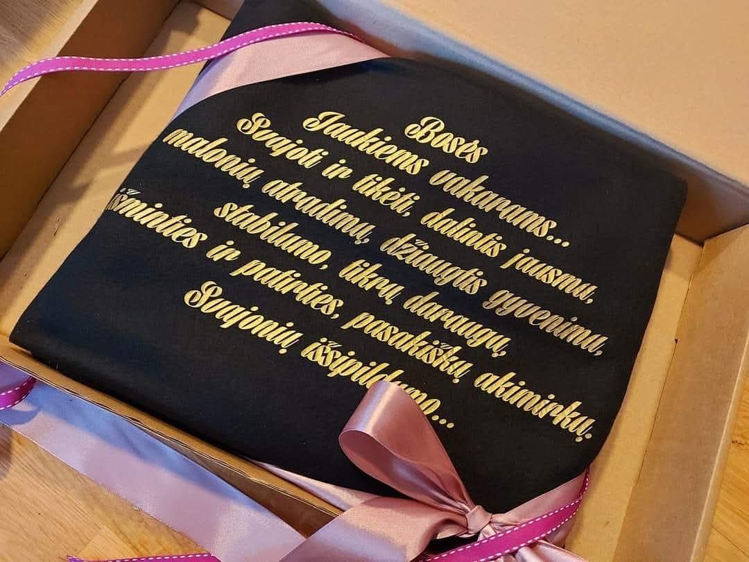 nedžiovinkite džiovyklėje;lyginkite tik iš išvirkščios pusės.