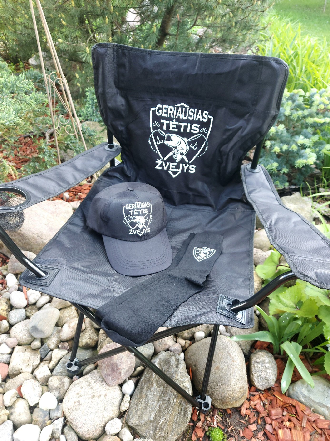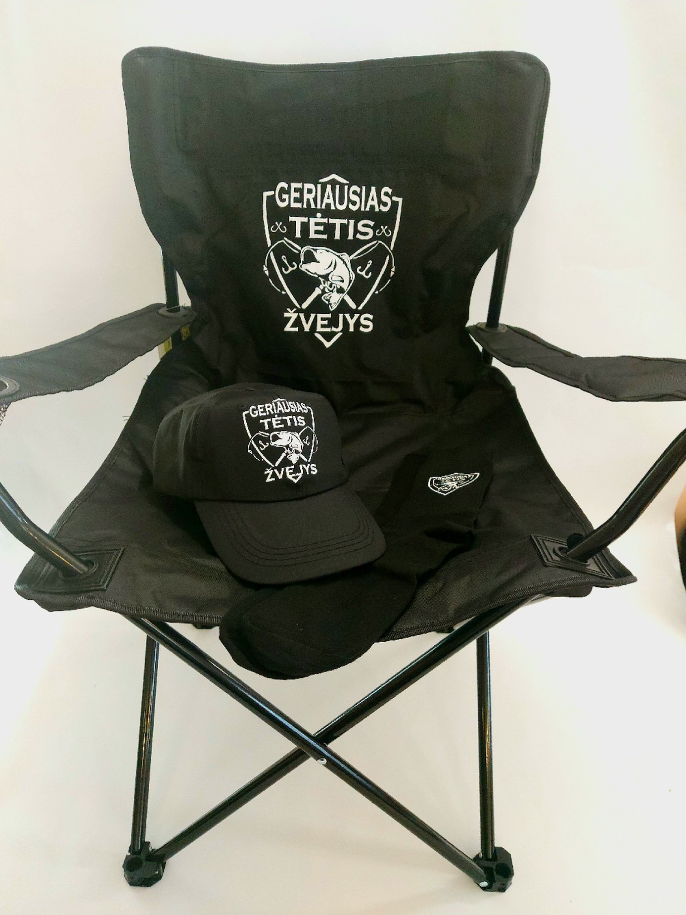 Rinkinį sudaro: sulankstoma turistinė kėdė(iki 100kg), kepuraitė ir kojinės 42-45d.